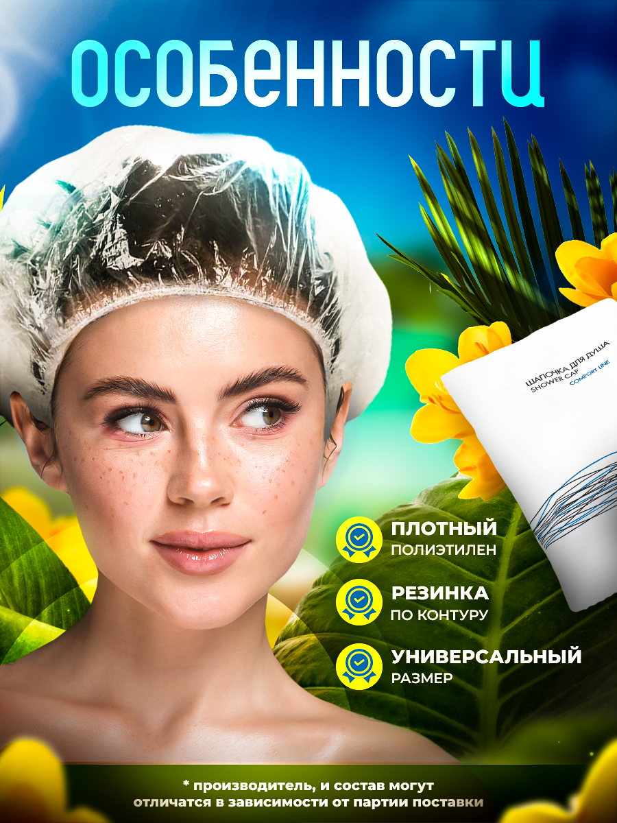 Шапочка для душа COMFORT LINE в индивидуальной упаковке флоупак - 10 штук информация: