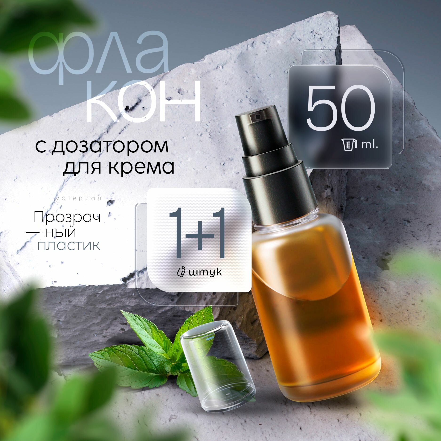 Флакон прозрачный с дозатором для крема, 50 мл, 2 шт. информация: