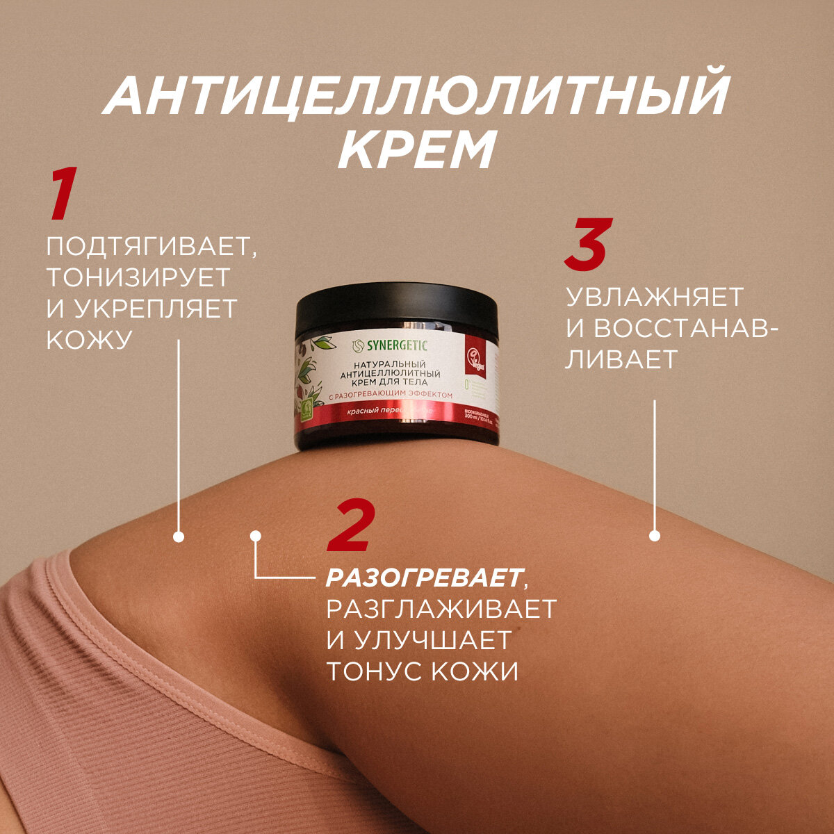 10 цен на Натуральный антицеллюлитный крем для тела SYNERGETIC с разогревающим эффектом "Красный перец и кофе", 300 мл
