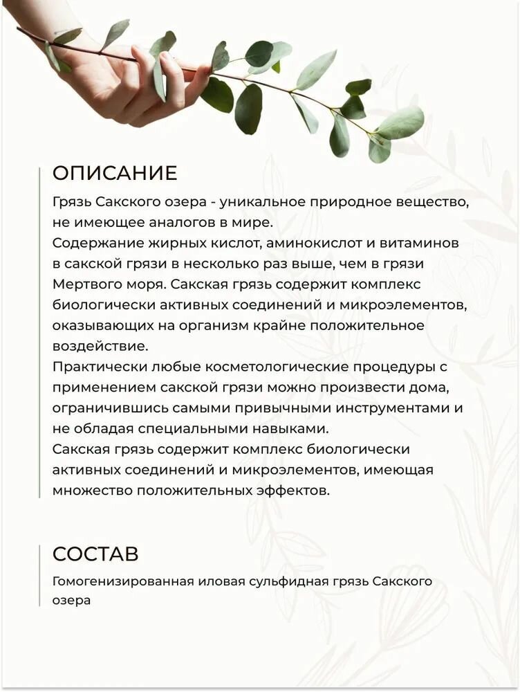 Грязь Сакского озера иловая сульфидная крымская лечебная для тела и суставов в дой паке, 1000 г информация: