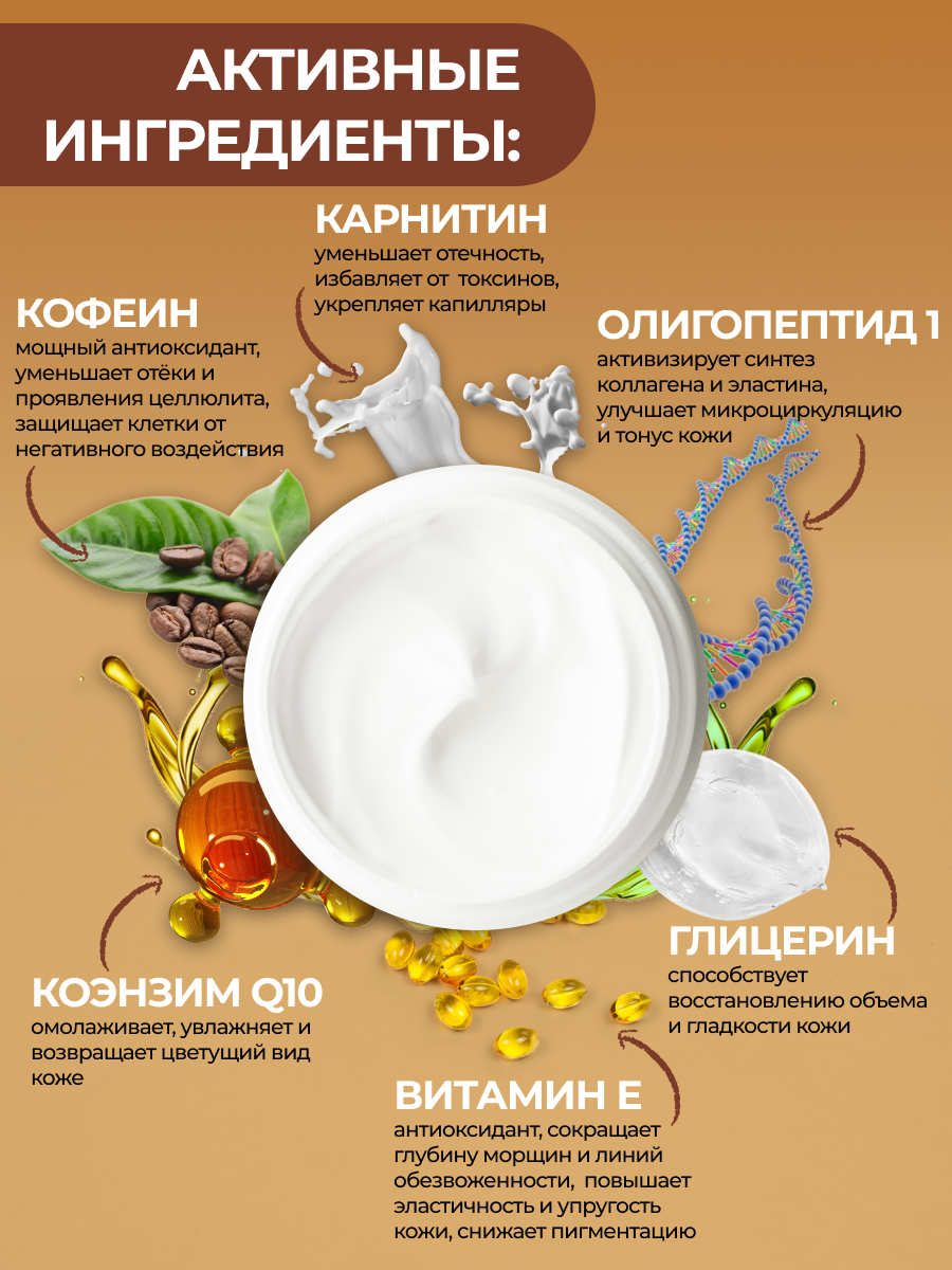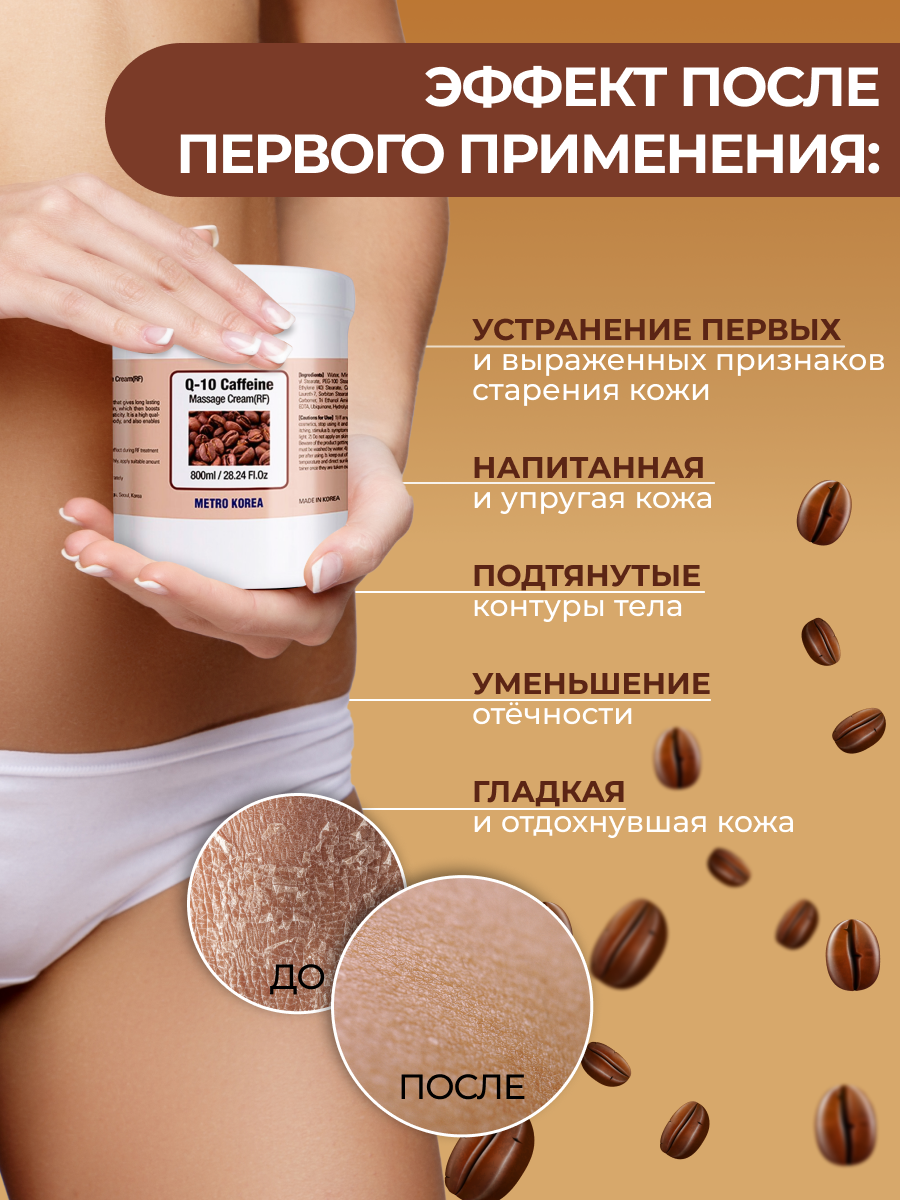 10 цен на Getitpure Massage cream RF Восстанавливающий массажный аппаратный RF крем для тела с кофеином и коэнзим Q10, 800 мл