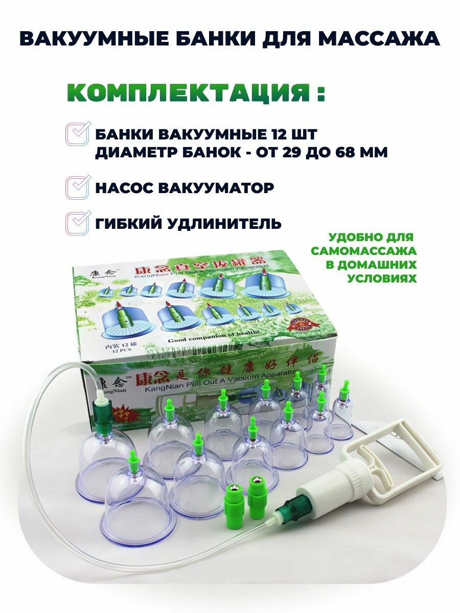 10 цен на Банки вакуумные для массажа и хиджама 12шт с насосом и удлинителем
