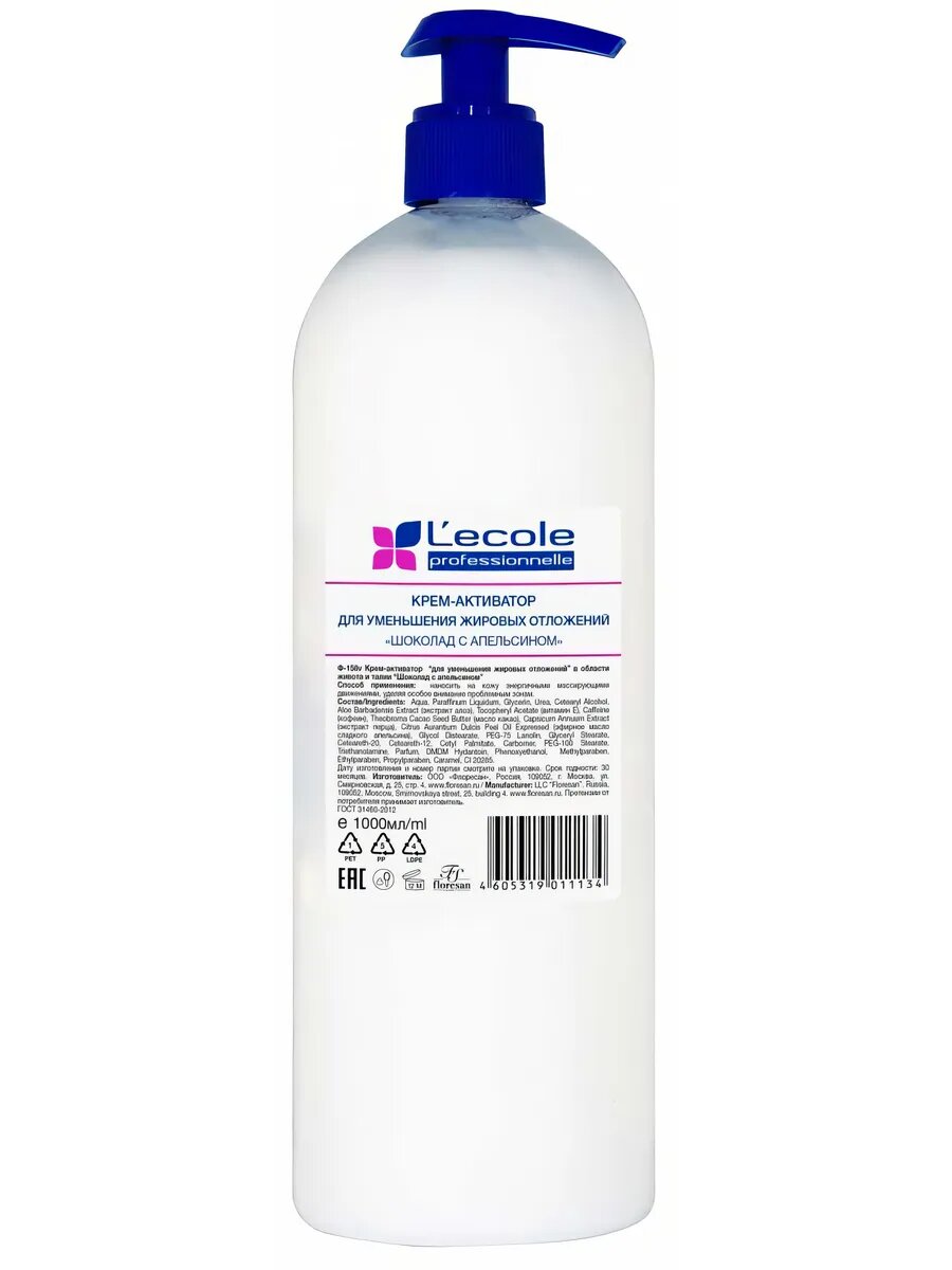 Floresan Крем-активатор Для уменьшения жировых отложений в области живота и талии "Шоколад с апельсином" Lecole professionnelle, 1000 мл информация: