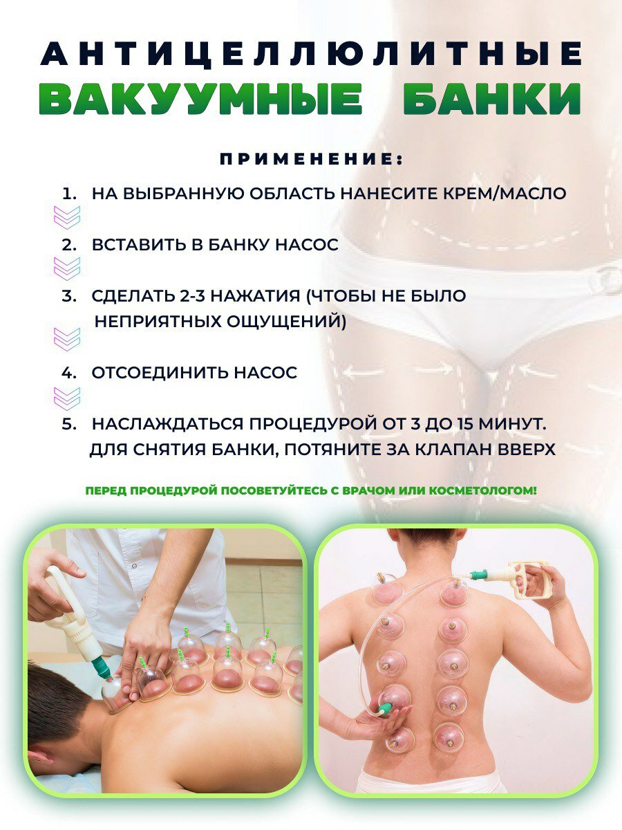 Антицеллюлитные вакуумные массажные банки 12 шт с насосом и удлинителем информация: