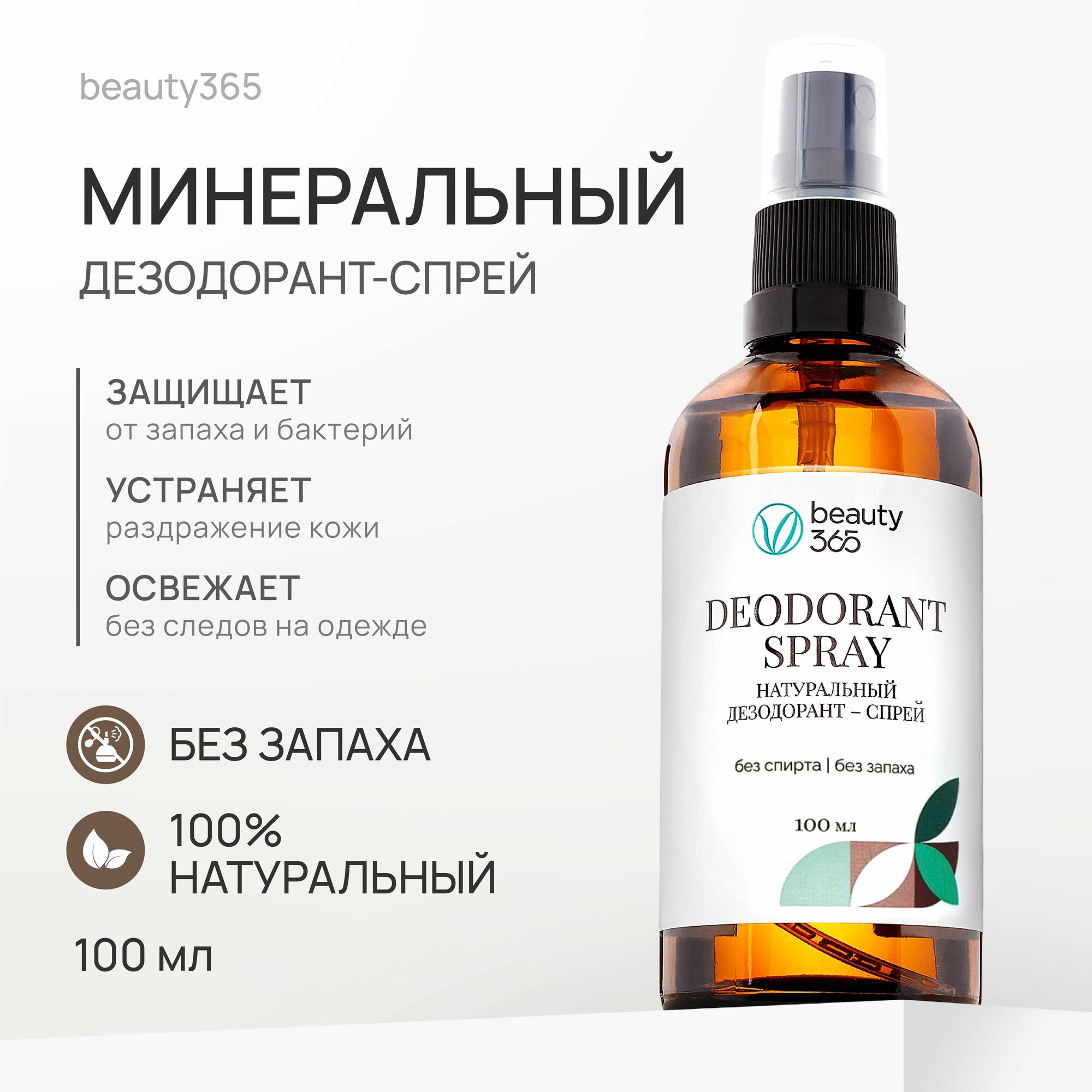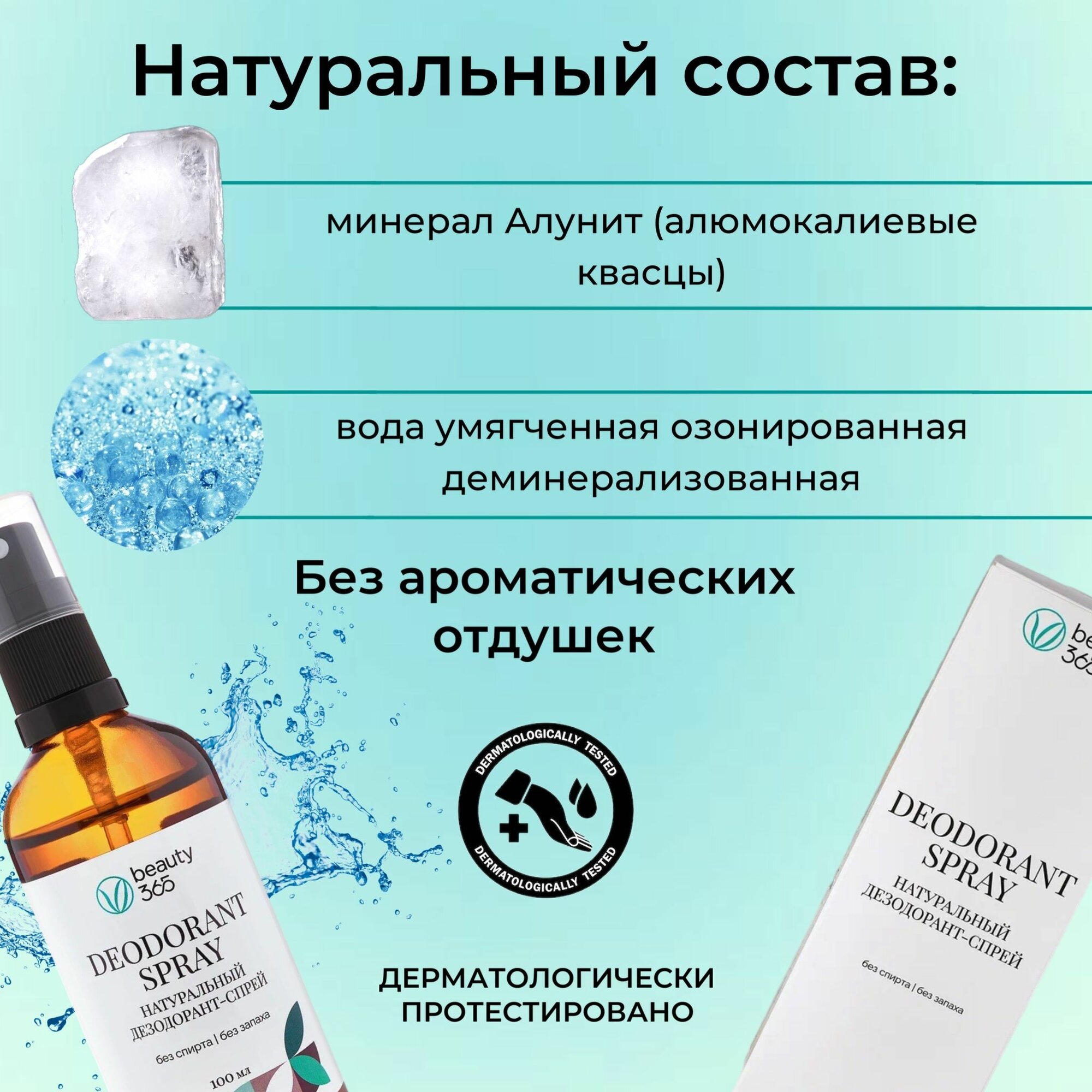 Beauty 365 Дезодорант минеральный натуральный, без запаха 100 мл информация: