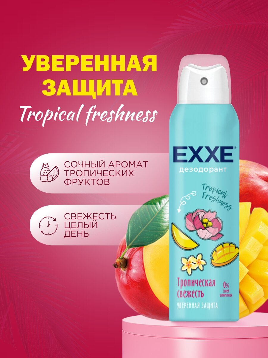 Отзывы на Дезодорант женский EXXE спрей набор Fresh SPA Невидимый 150мл + Нежность шелка + Powder touch + Fruit kiss + Tropical freshness 150мл*5шт