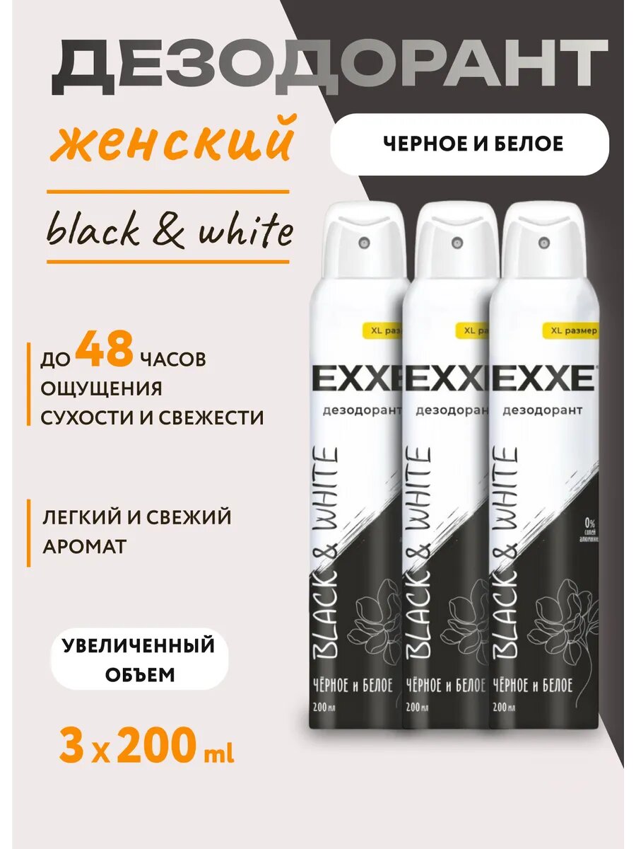 Дезодорант EXXE Черное Белое, спрей, антибактериальный, без спирта и сульфатов, 200мл, 3шт информация: