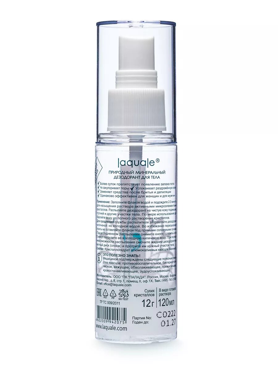 Минеральный дезодорант для тела LAQUALE deo-aqua от пота (мужской/женский), 120 мл информация: