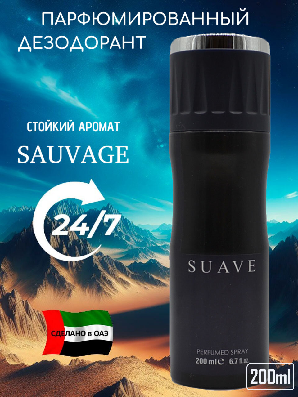 Дезодорант SUAVE Саваж, мужской, спрей, парфюмированный, 200мл информация: