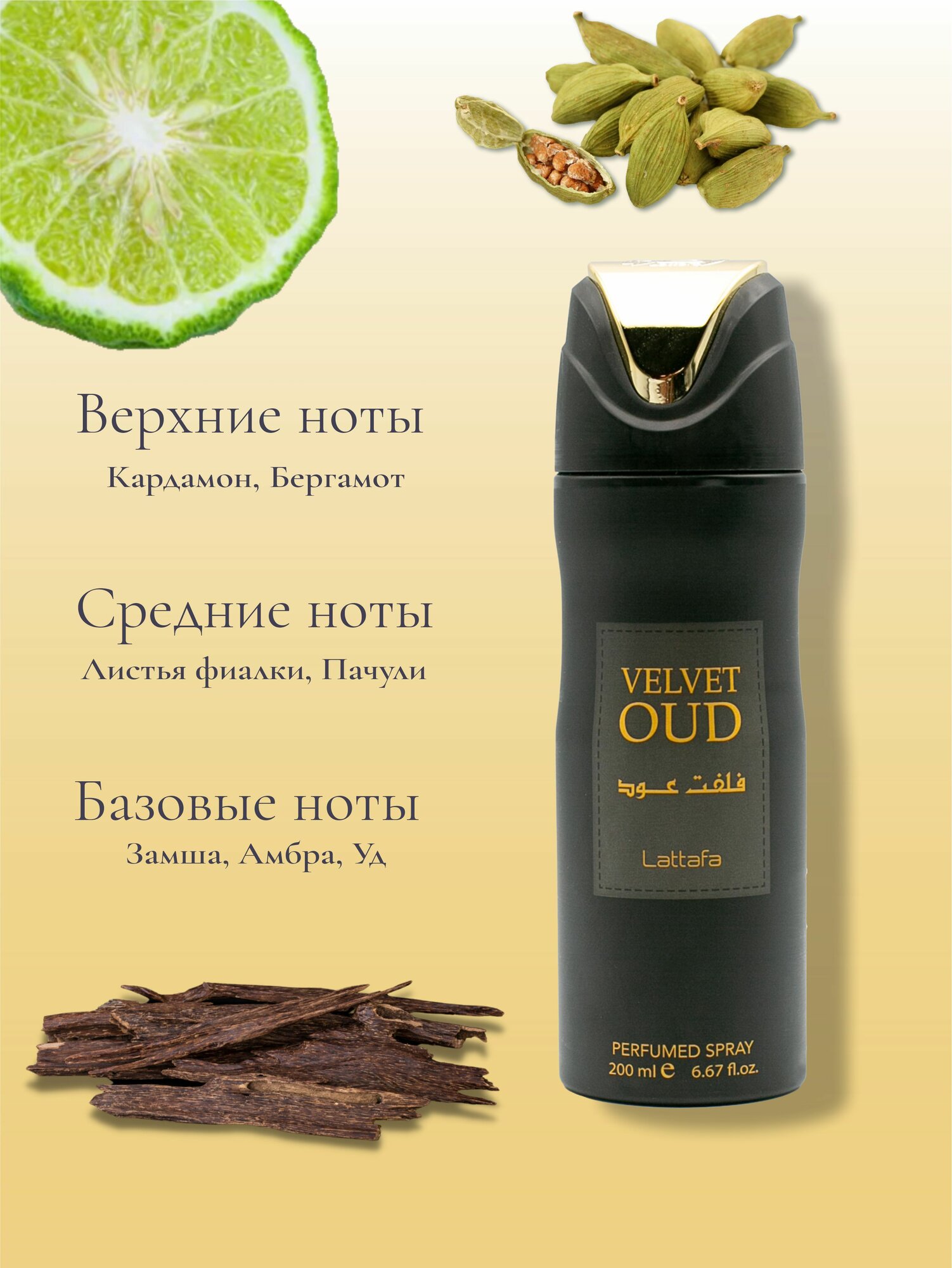 Парфюмированный дезодорант Velvet Oud, Lattafa Perfumes, женский, спрей, 200 мл информация: