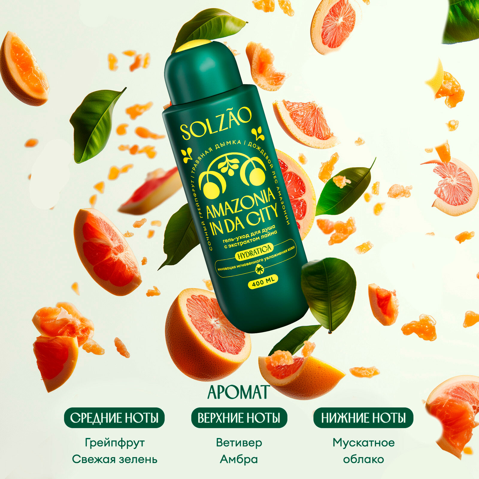 10 цен на Гель для душа Solzao Amazonia с экстрактом лайма, увлажняющий, 400 мл