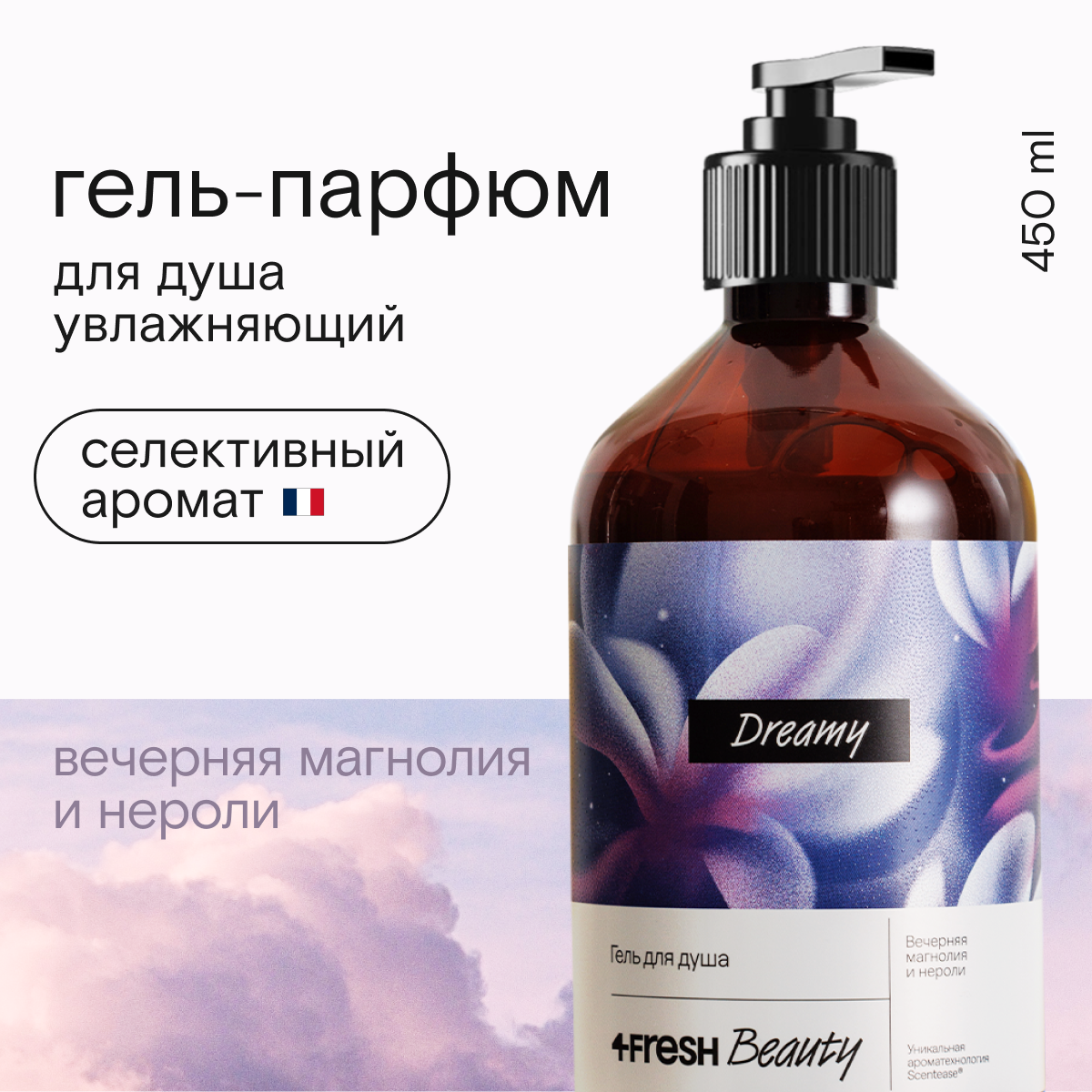 Гель для душа парфюмированный 4FRESH beauty Dreamy вечерняя магнолия и нероли, натуральный, увлажняющий, 450 мл информация: