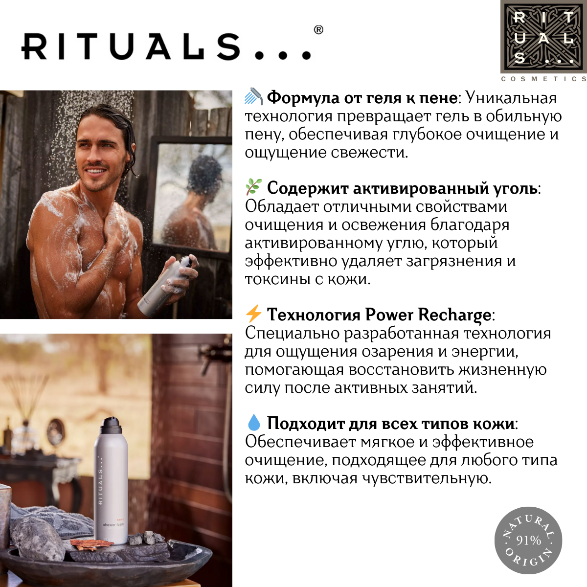 10 цен на Гель для душа Rituals Sport со свежими нотами цитрусовых, бергамота и мяты 200мл