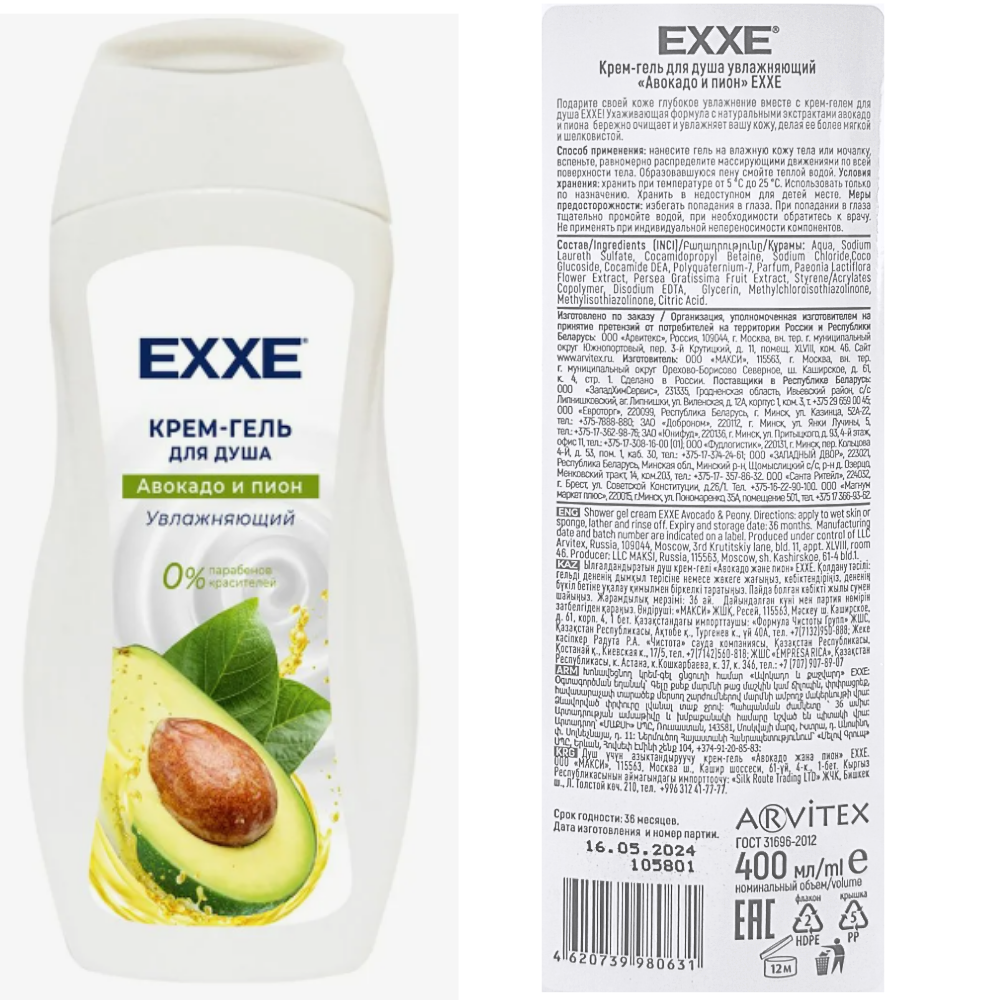 Увлажняющий крем-гель "Exxe Авокадо и пион" для душа, 2 штуки информация: