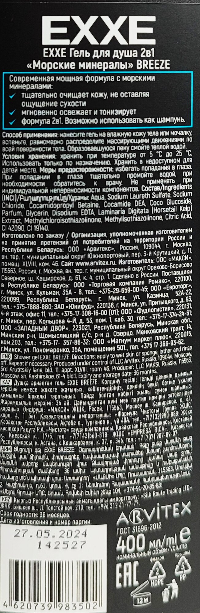 Набор косметики для мужчин EXXE Ледяная Свежесть, 550мл 663 ₽