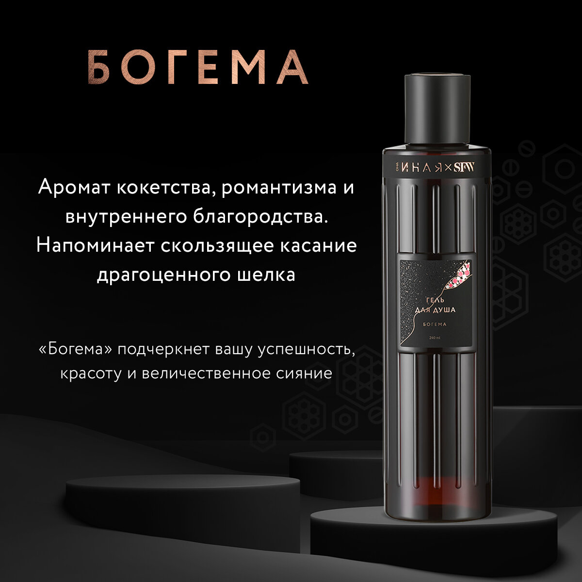 Гель для душа с ароматом Богема Она Иная & Sochi Fashion Week 240 мл /парфюмированный, бессульфатный / пептид шелка информация: