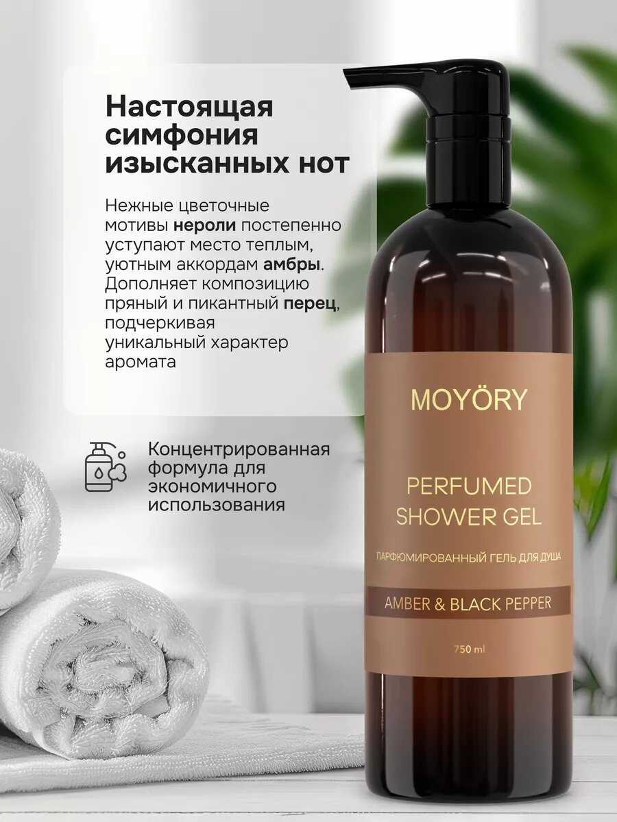 10 цен на Парфюмированный гель для душа "MOYORY" с ароматом амбры и черного перца, 750мл.
