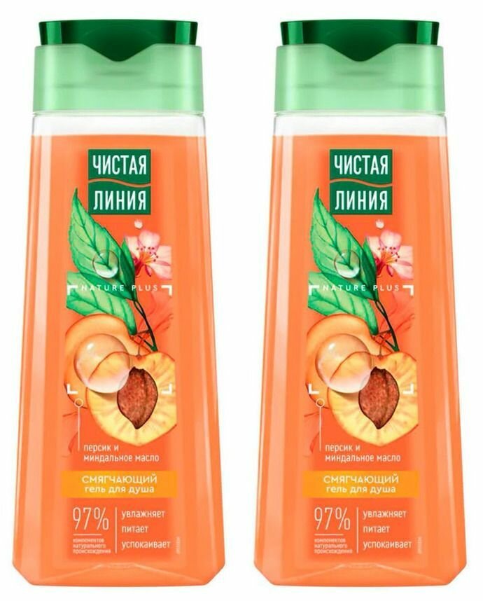 Чистая Линия гель для душа Смягчающий на 100% натуральной основе, с персиком и маслом миндаля 250 мл