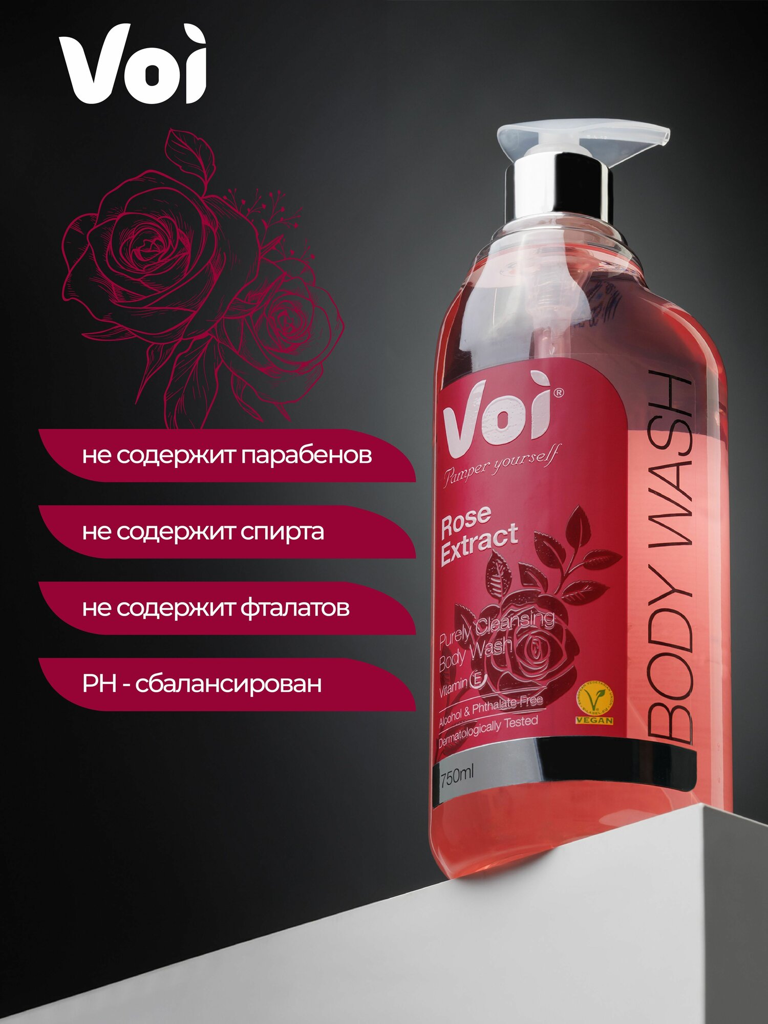 Гель для душа с экстрактом розы 750 мл VOI информация: