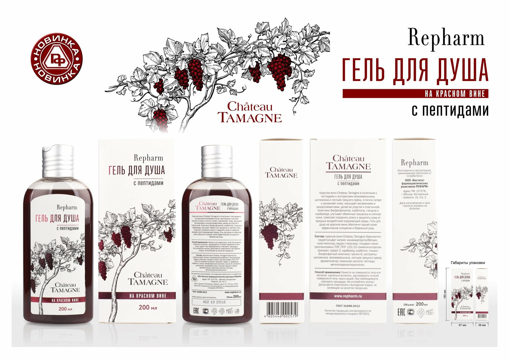 Гель для душа Repharm на красном вине Chateau Tamagne с пептидами 200 мл информация: