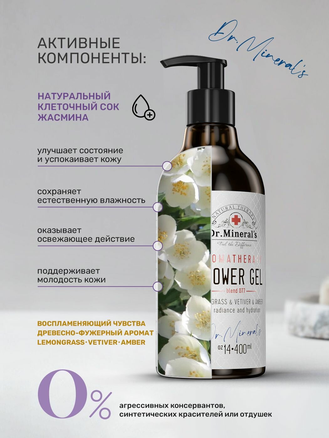 Dr. Mineral's, Увлажняющий ароматический гель для душа / натуральный уход за кожей / аромат лемонграсс-ветивер-амбра, 400 мл информация: