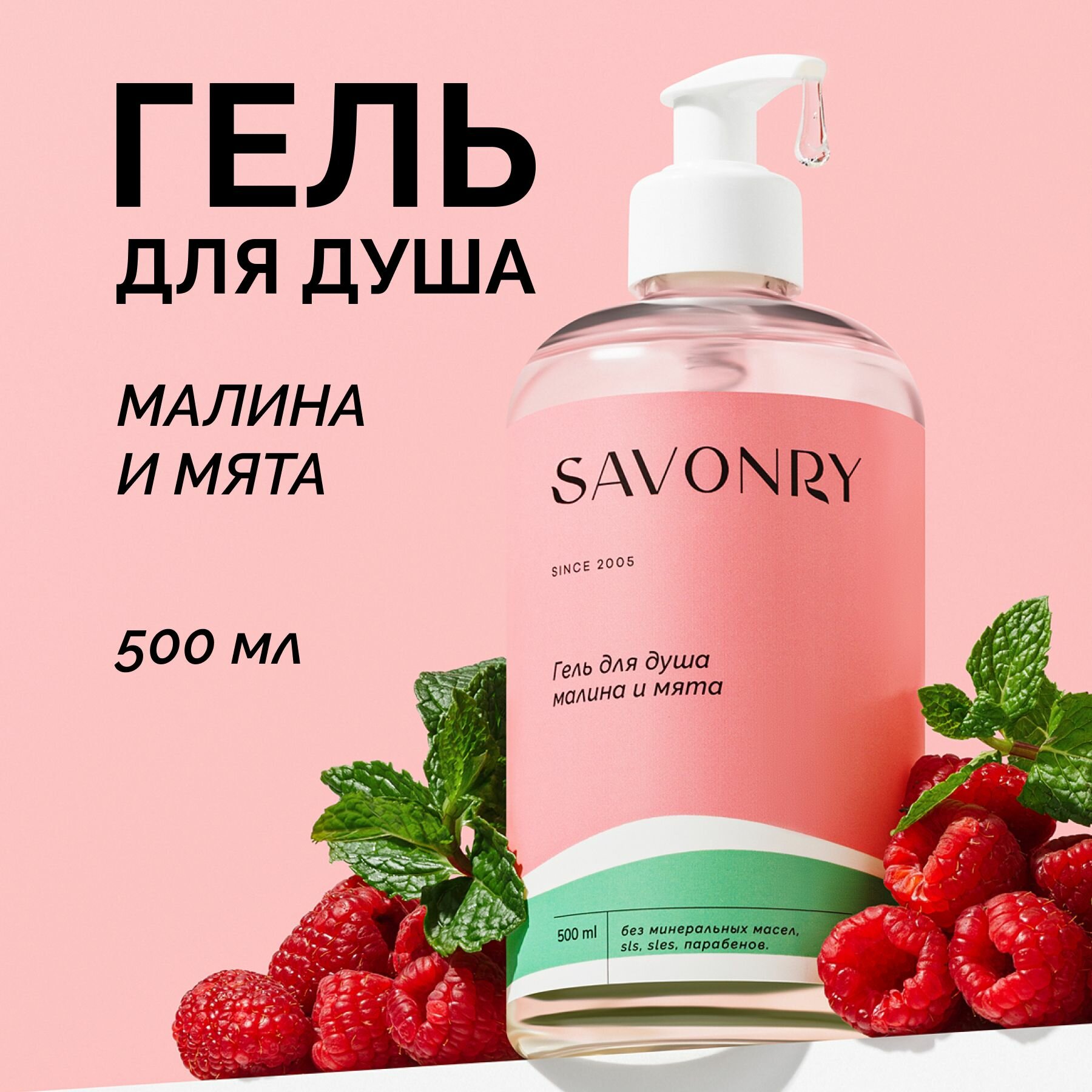 SAVONRY Гель для душа Малина и мята, 500мл информация: