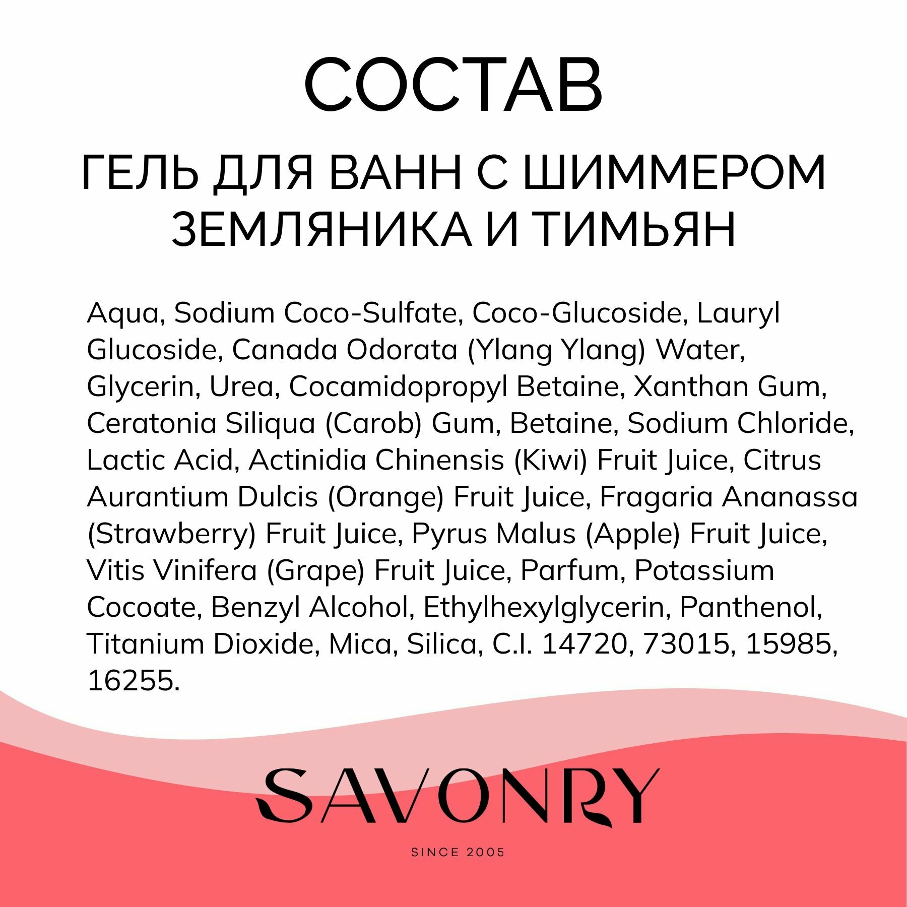 SAVONRY Гель для душа с шиммером Земляника и тимьян 250 мл информация: