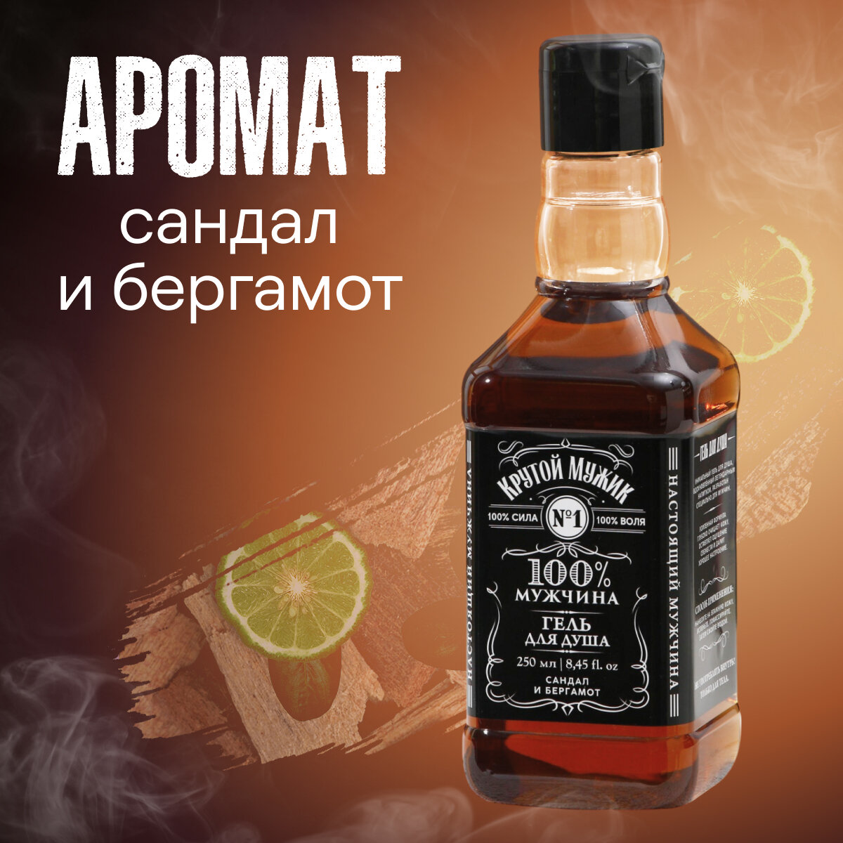 Гель для душа мужской «100% мужчина» в подарочном флаконе виски, аромат сандал и бергамот, 250 мл информация:
