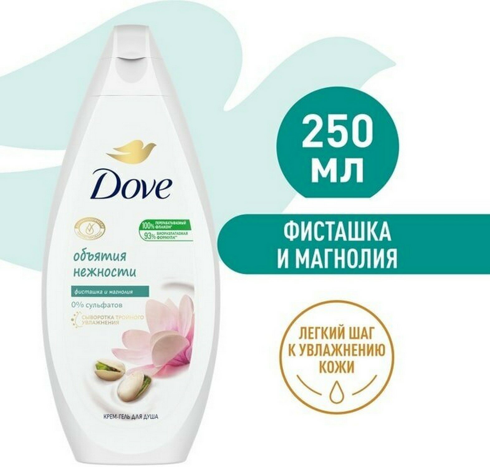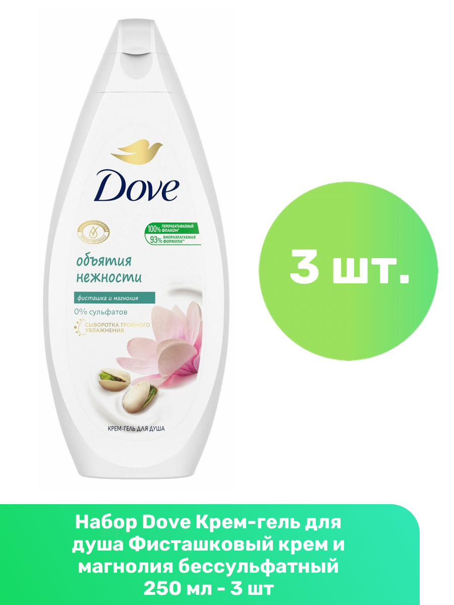 Отзывы на Dove Крем-гель для душа Фисташковый крем и магнолия бессульфатный 250 мл - 3 шт