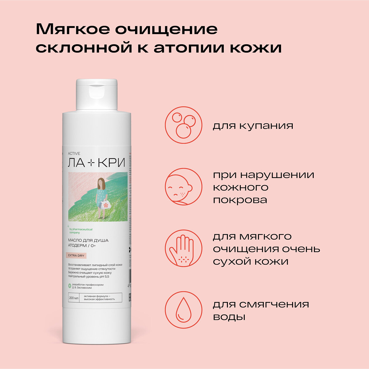 Смягчающее масло для ванны и душа Ла-кри для сухой и склонной к атопии кожи младенцев, детей и взрослых, 200 мл информация: