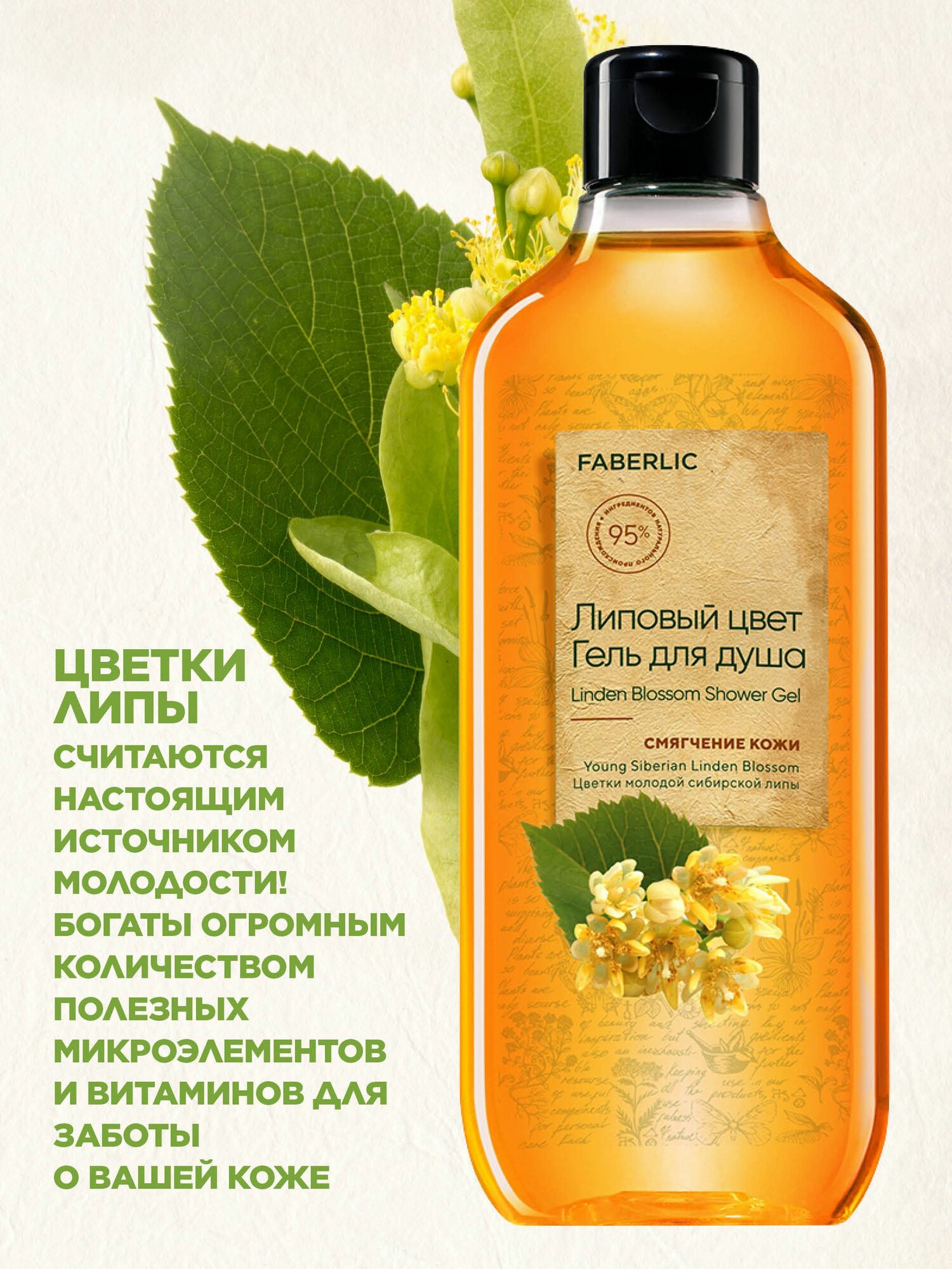 Faberlic Натуральный гель для душа, смягчающий кожу, женский и мужской, Липовый Цвет, Смягчение Кожи, Богатства Природы, 380 мл, Фаберлик информация: