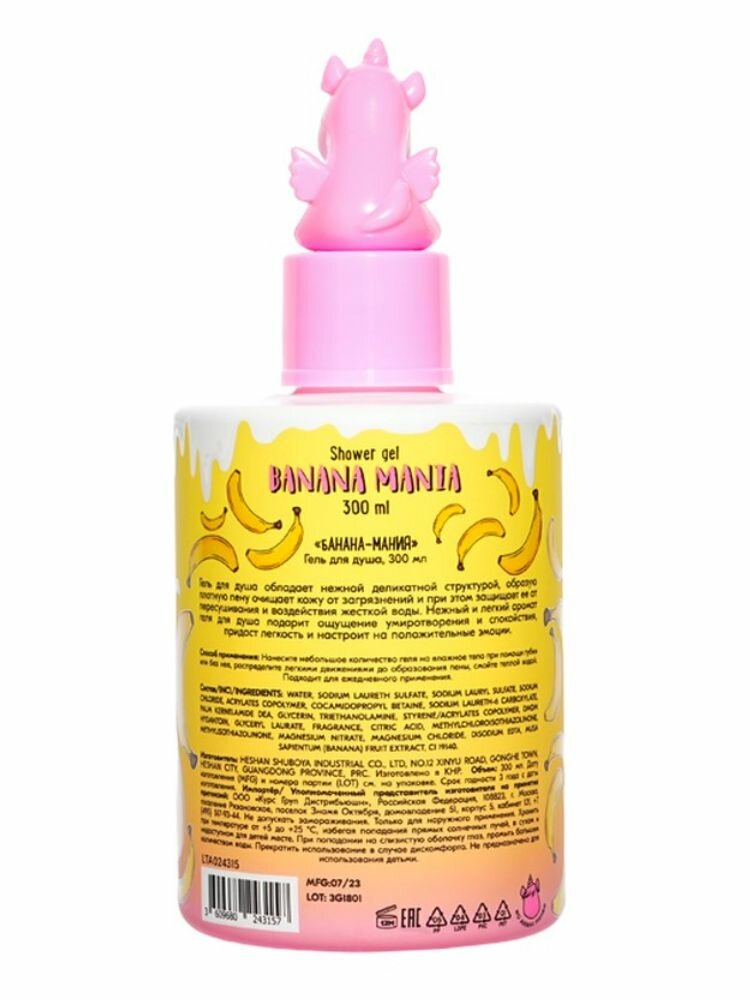 Гель для душа женский для всех типов кожи UNICORNS APPROVE Банана-мания, 300 мл информация: