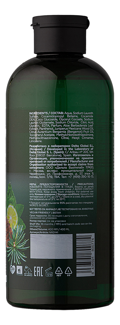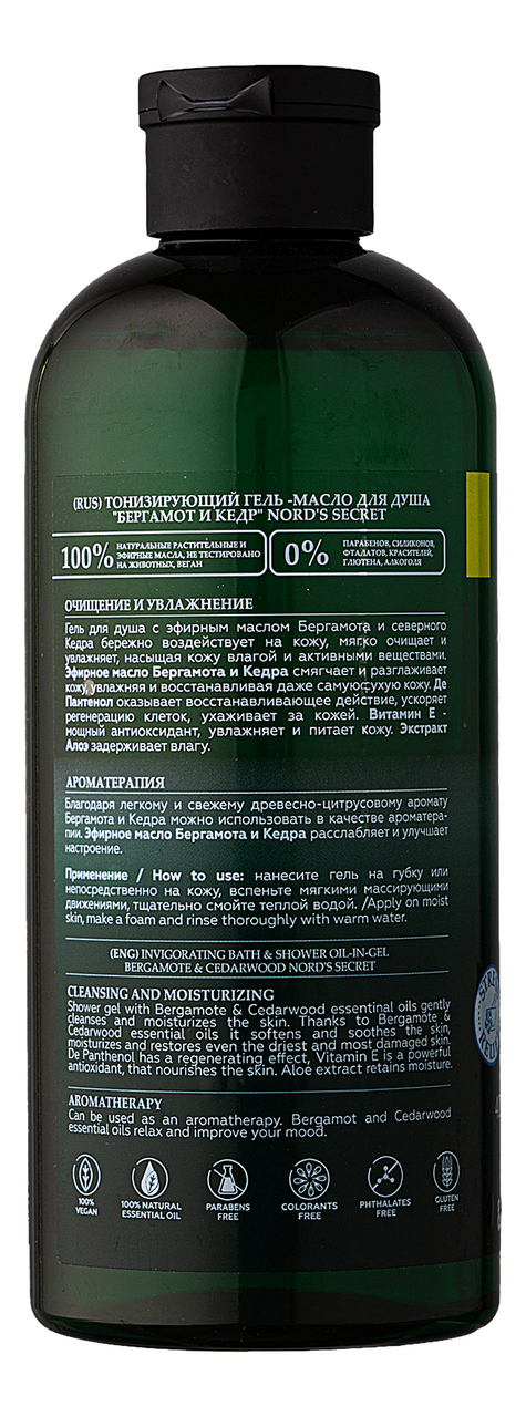 Гель для душа NORD'S SECRET Бергамот и кедр, 400мл информация: