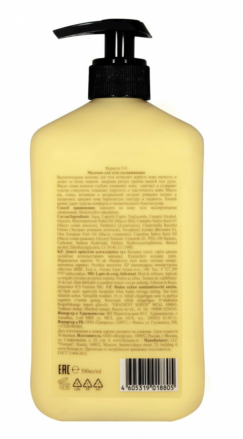Floresan Молочко для тела увлажняющее для сухой и чувствительной кожи 500 мл. информация:
