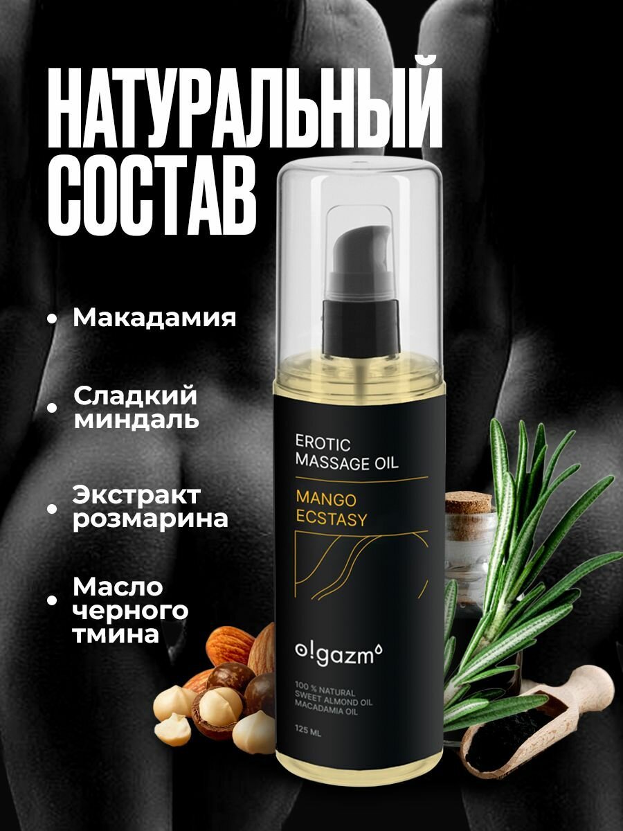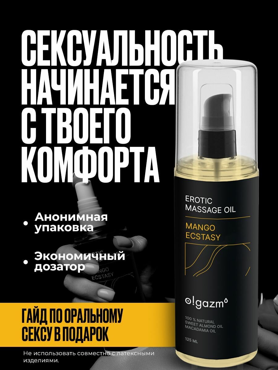 10 цен на O! GAZM / Масло для эротического массажа Манговый экстаз, увлажняющее, для тела, с афродизиаком, для мужчин и женщин / Съедобное возбуждающее интимное массажное масло для секса 125 мл