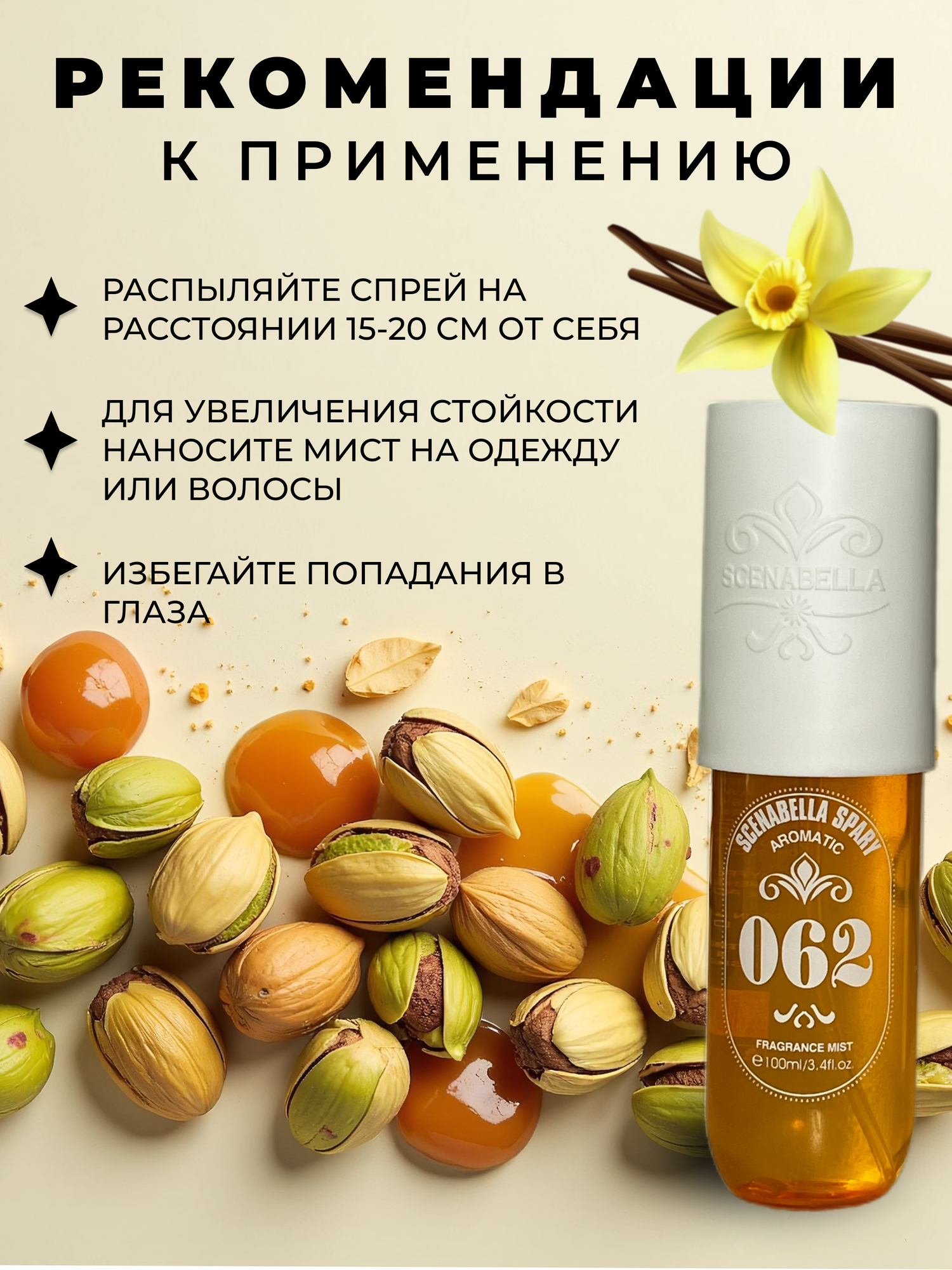 Scenabella парфюмированный спрей мист для тела и волос 62 "Соленая карамель, ваниль, фисташки" информация: