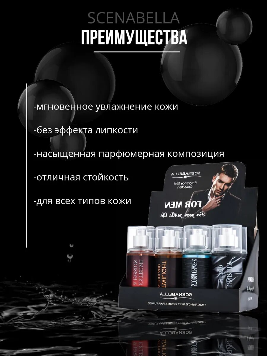 10 цен на Scenabella Парфюмированный спрей мист для тела и волос мужской 88мл