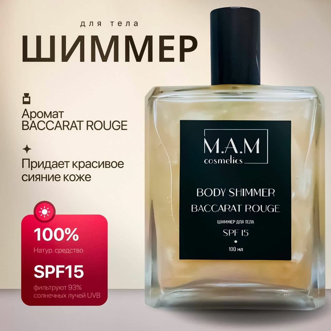 10 цен на Шиммер для тела с ароматом Baccarat Rouge 100 мл. M.A.M cosmetics в стекле
