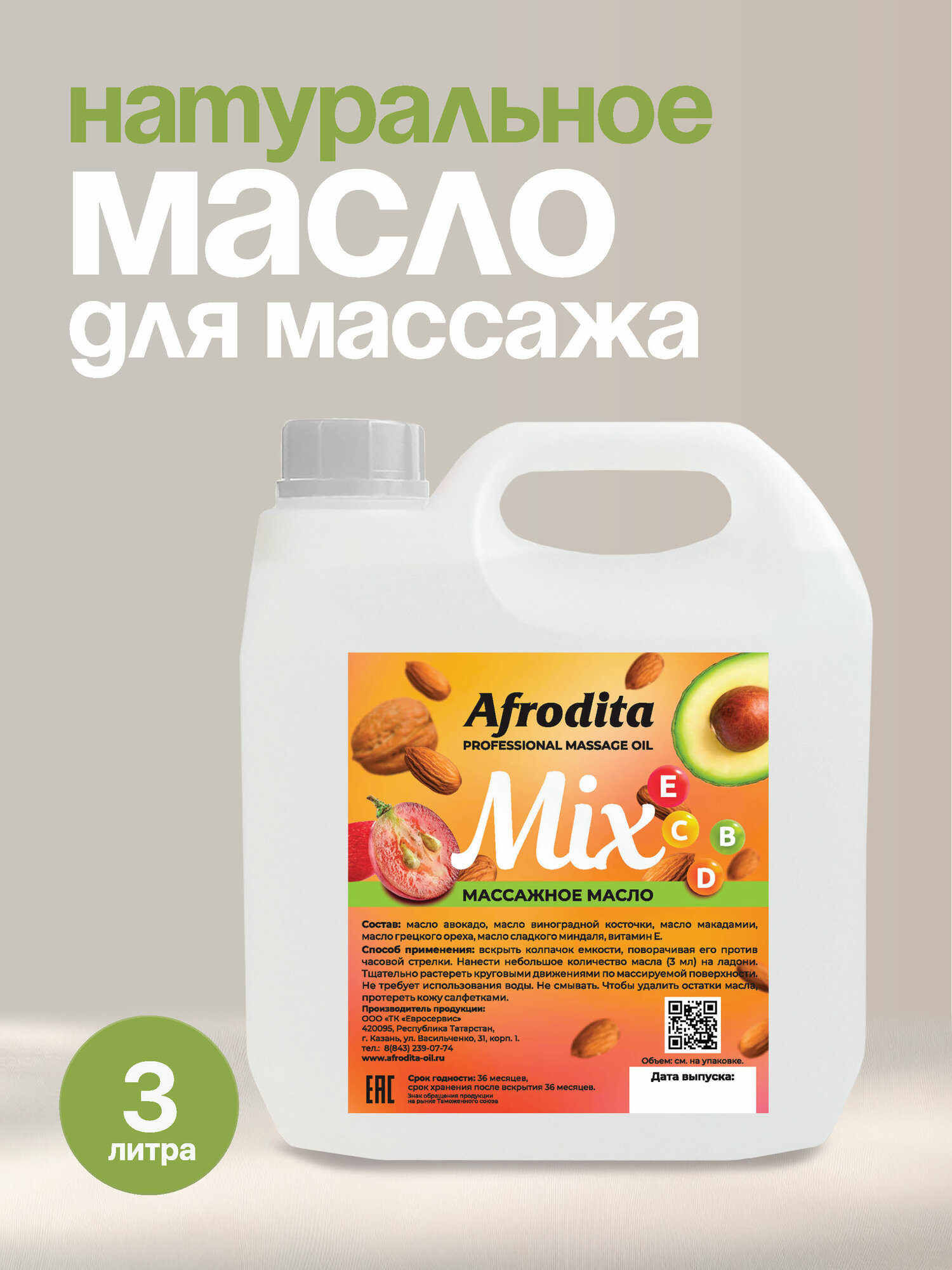 Массажное масло Афродита MIX из косточек фруктовых плодов 3 литра информация:
