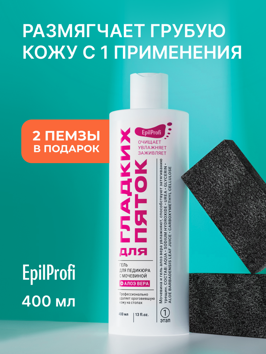 Гель для педикюра EpilProfi, с мочевиной, с пемзами, увлажняющий, для всех типов кожи, 400мл информация:
