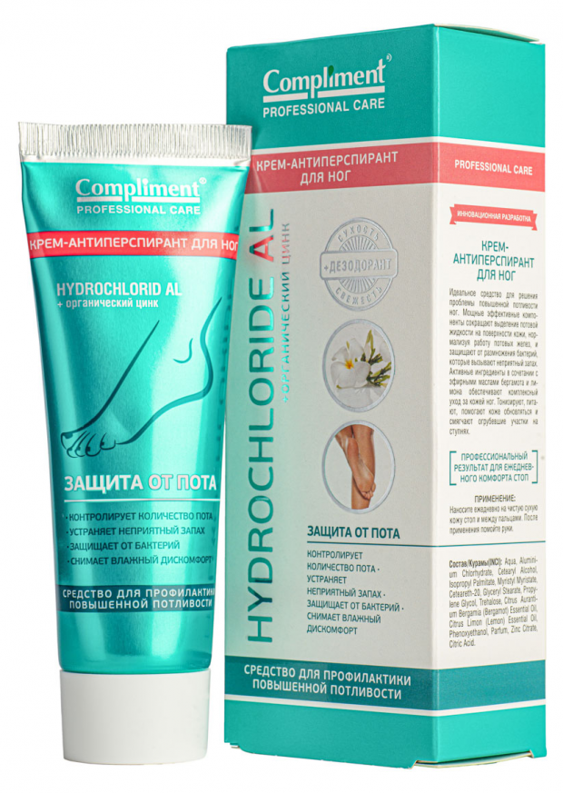 Compliment Крем-антиперспирант для ног, профессиональный уход, 80мл информация: