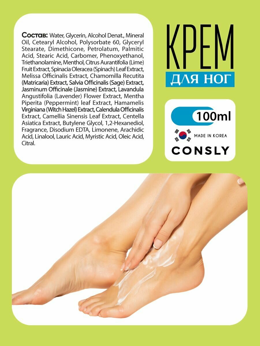 Consly Освежающий крем для ухода за кожей ног, корейская косметика. 100мл информация: