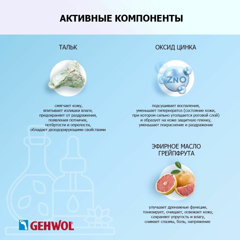 10 цен на Пудра для ног от пота и запаха Геволь Gehwol тальк для ухода за кожей ног, подходит для всего тела 100гр. 24806