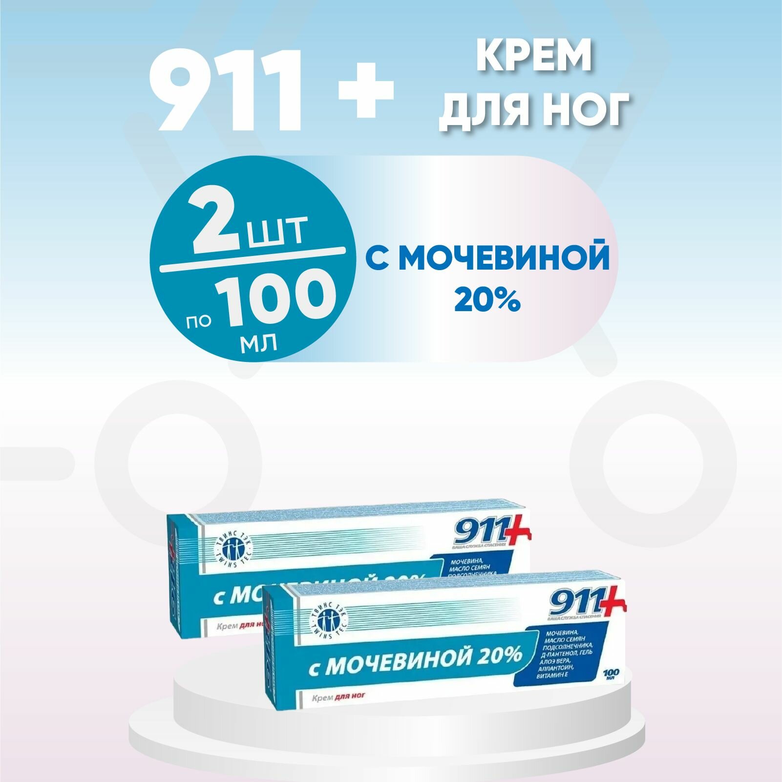911 Крем для ног, с мочевиной 20%, 2 упаковки по 100 мл, комплект из 2х штук информация: