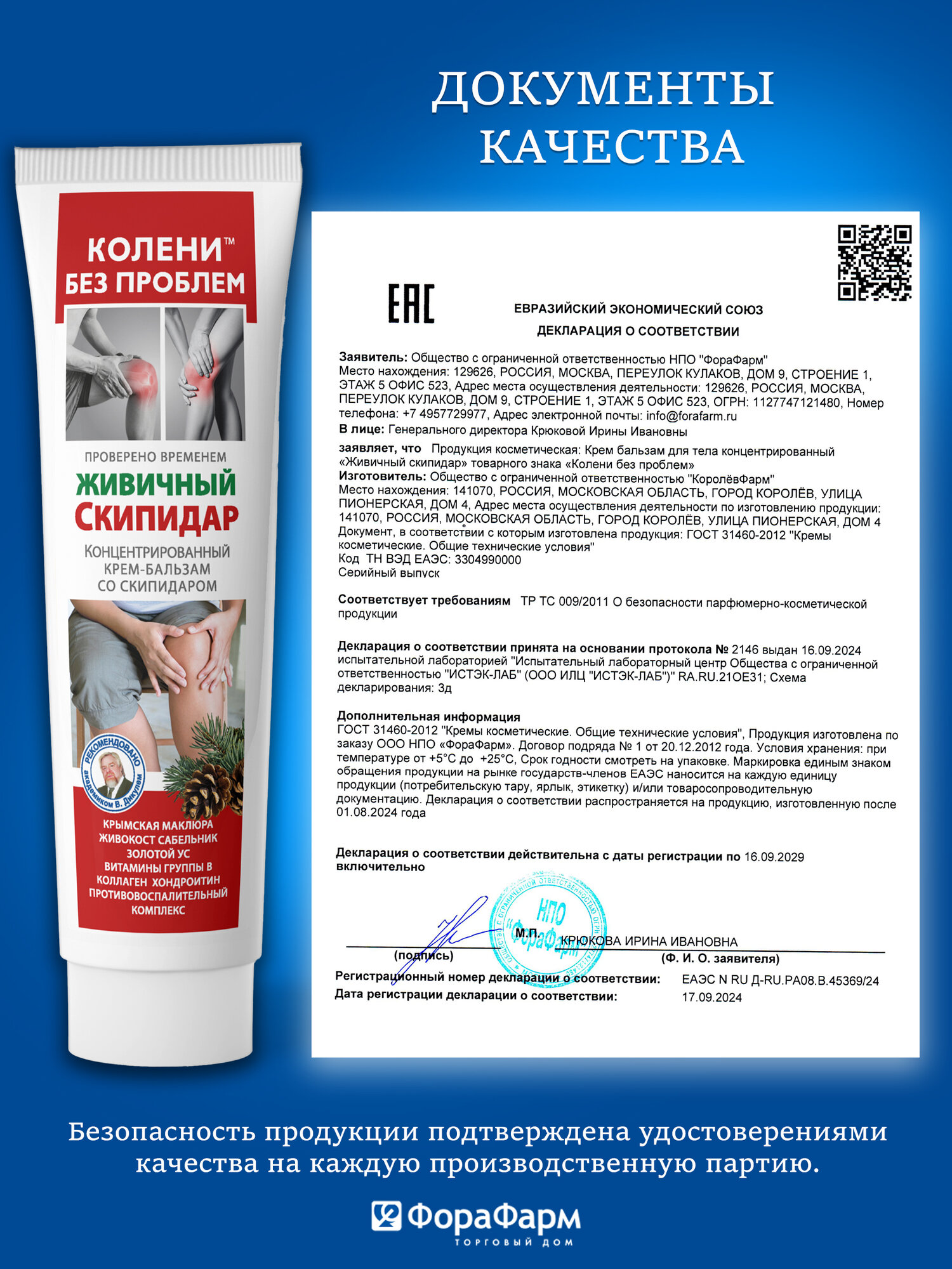 Крем для суставов с Живичным скипидаром и экстрактами растений Колени без проблем 125 мл. НПО ФораФарм. информация: