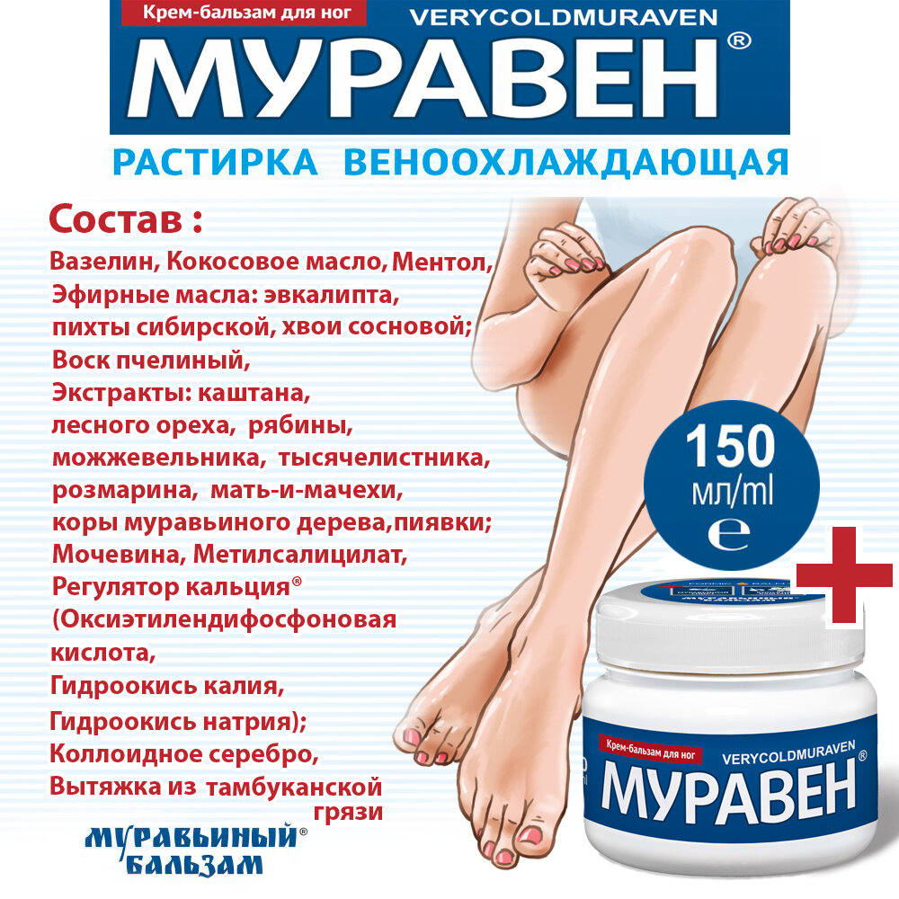 Отзывы на Крем-растирка для ног муравен с муравьиным спиртом и конским каштаном для суставов, вен, мышц 150 мл