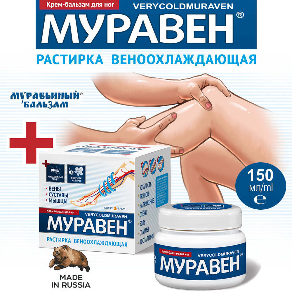 10 цен на Крем-растирка для ног муравен с муравьиным спиртом и конским каштаном для суставов, вен, мышц 150 мл