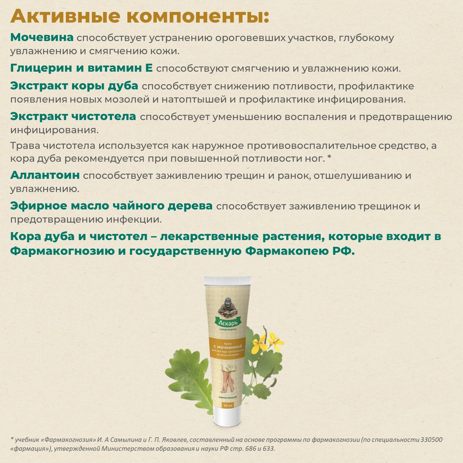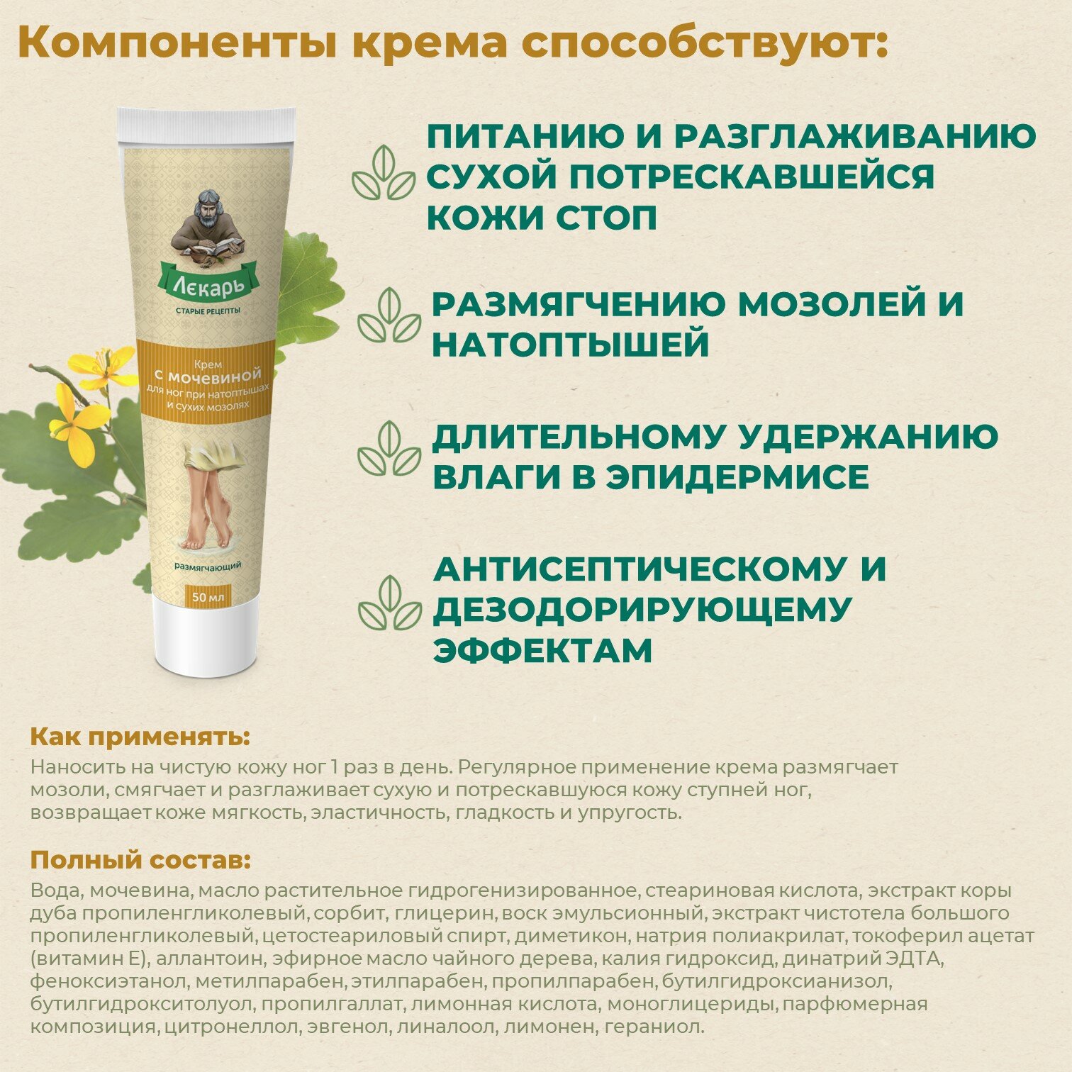 Лекарь Крем для ног с мочевиной при натоптышах и сухих мозолях 2 шт по 50 мл информация: