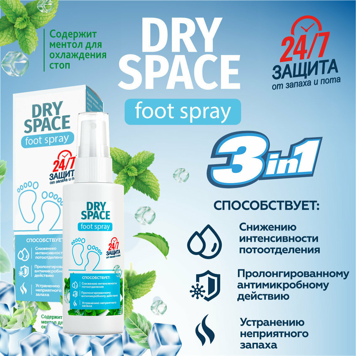 10 цен на Dry Space спрей для ног от запаха и пота. Дезодорант для обуви от запаха. Спрей Драй спейс 150 мл способствует уменьшению потоотделения ног
