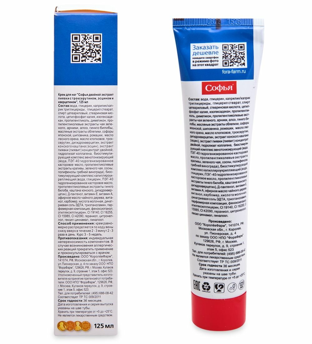10 цен на Софья Двойной экстракт пиявки (троксерутин, эсцин, кверцетин) крем для ног 125мл